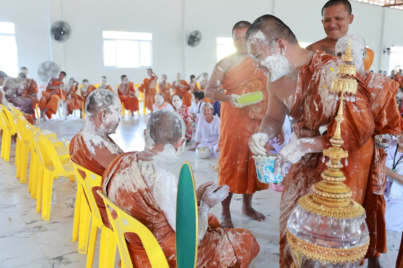 มีพุทธศาสนิกชนที่เดินทางมาร่วมทำบุญตักบาตร สรงน้ำพระ รดน้ำขอพรผู้สูงอายุ ท่ามกลางบรรยากาศที่เปี่ยมไปด้วยรอยยิ้มและความอบอุ่นของคนในพื้นที่