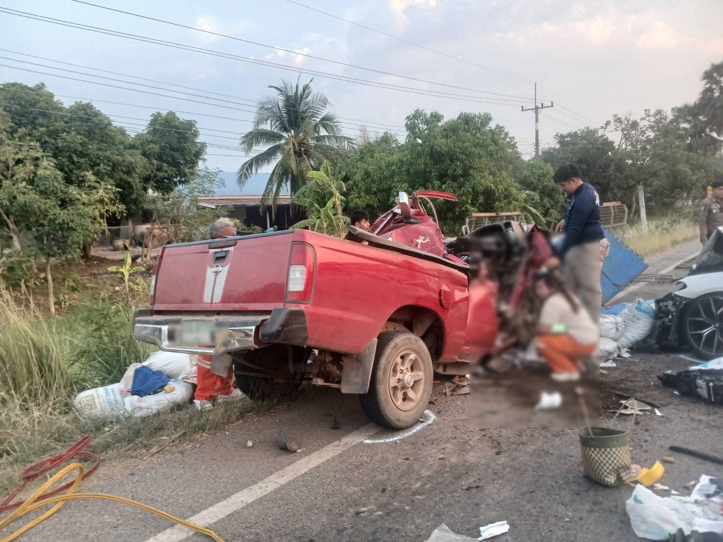 รถนั่งส่วนบุคคลชนประสานงากับ รถกระบะ กลางถนนหมายเลข 2246 มีผู้เสียชีวิต 2 ราย จ.นครราชสีมา