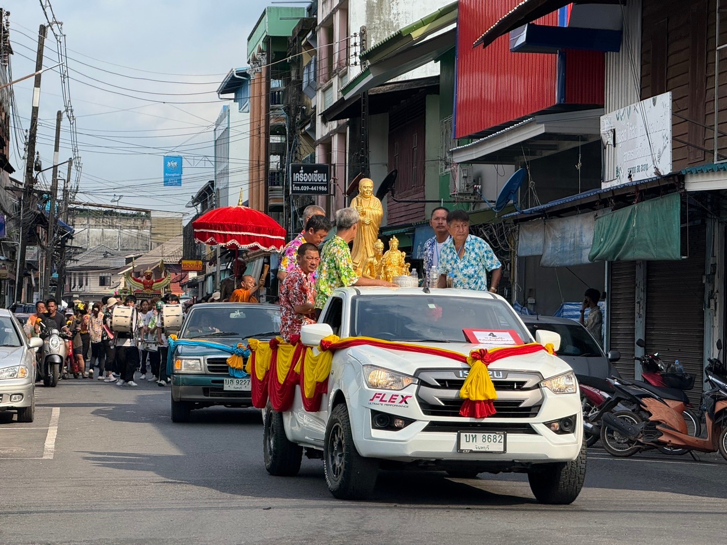 โดยมีขบวนทั้งหมด 23 ขบวน มีเอกลักษณ์ และผสมผสานความเชื่อของศาสนาพุทธ-คริสต์ และวัฒนธรรมไทย-จีน-ญวน ซึ่งชาวไทย ชาวญวน และชาวไทยเชื้อสายจีน ในอำเภอขลุงจะออกมาร่วมขบวนแห่ไปรอบตัวเมืองขลุง เช่น ขบวนแห่พระพุทธสิหิงค์ เพื่อให้ประชาชน และนักท่องเที่ยว ทั้งสองฝั่งข้างทางได้ร่วมสรงน้ำปะพรมน้ำมนต์ เพื่อความเป็นสิริมงคล