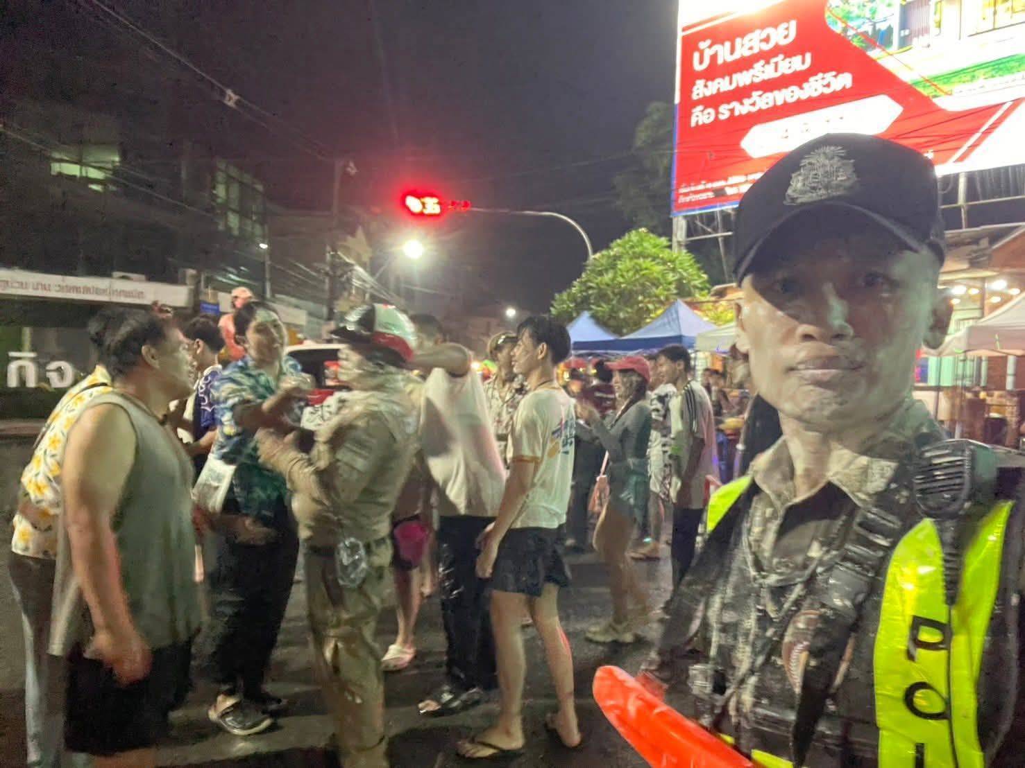 พร้อมกันนี้ ในหลายพื้นที่ทั่วประเทศยังปรากฏภาพความสัมพันธ์อันดีระหว่างเจ้าหน้าที่ตำรวจกับประชาชน โดยเจ้าหน้าที่ได้ร่วมเล่นน้ำตามวิถีสงกรานต์อย่างเหมาะสม สร้างบรรยากาศเป็นกันเองและรอยยิ้มให้กับประชาชน ควบคู่กับการปฏิบัติหน้าที่ดูแลความปลอดภัยอย่างใกล้ชิด สะท้อนภาพลักษณ์ “ตำรวจจราจรใกล้ชิดประชาชน” ในช่วงเทศกาลสำคัญ