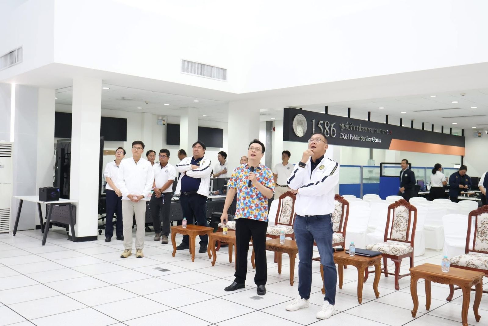 จากนั้น คณะฯ ได้เดินทางไปตรวจเยี่ยมศูนย์ควบคุมสั่งการจราจร กองบังคับการตำรวจทางหลวง โดยบูรณาการการทำงานร่วมกับตำรวจทางหลวงในการดูแลความปลอดภัยตลอด 24 ชั่วโมง ในการนี้ มี พ.ต.อ.พิชญ์รุจ กุลวิมลประทีป รองผู้บังคับการตำรวจทางหลวง ให้การต้อนรับ และ พ.ต.อ.สุขสวัสดิ์ คูสิทธิผล รองผู้บังคับการตำรวจทางหลวง เป็นผู้รายงานภาพรวมการบริหารจัดการจราจร และมาตรการอำนวยความสะดวกแก่ประชาชน