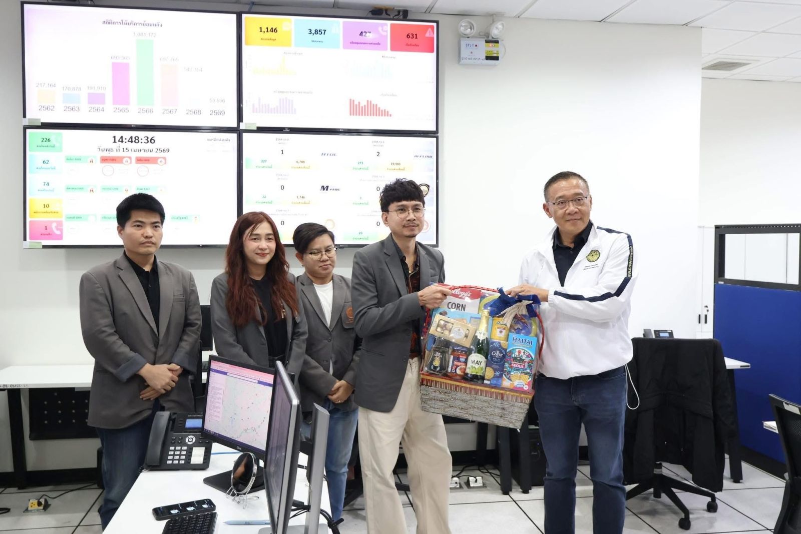 วันนี้ (15 เมษายน 2569) นายชยธรรม์ พรหมศร ปลัดกระทรวงคมนาคม พร้อมด้วย นายทรงยศินทร์ ชนปทาธิป ผู้ตรวจราชการกระทรวงคมนาคม ลงพื้นที่ตรวจเยี่ยมและรับฟังการบรรยายสรุปสภาพการจราจร รวมทั้งตรวจความพร้อมในการอำนวยความสะดวกและความปลอดภัย รองรับการเดินทางกลับเข้าสู่กรุงเทพมหานครของประชาชนภายหลังเทศกาลสงกรานต์ 2569 โดยมี นายปิยพงษ์ จิวัฒนกุลไพศาล อธิบดีกรมทางหลวง นายพงษ์พันธ์ จั่นเงิน รองอธิบดีฝ่ายวิชาการ ผู้บริหารและเจ้าหน้าที่กรมทางหลวงให้การต้อนรับ พร้อมนี้ได้มอบกระเช้าเพื่อเป็นกำลังใจแก่เจ้าหน้าที่ ณ ศูนย์บริหารจัดการจราจรและอุบัติเหตุ (Highway Traffic Operation Center: HTOC) กรมทางหลวง ซึ่งเป็นศูนย์กลางในการรวบรวมข้อมูลจราจรแบบเรียลไทม์จากทั่วประเทศ พร้อมติดตามสถานการณ์บนโครงข่ายทางหลวงอย่างใกล้ชิด เพื่อประสานงานแก้ไขปัญหาจุดชะลอตัวได้อย่างทันท่วงที