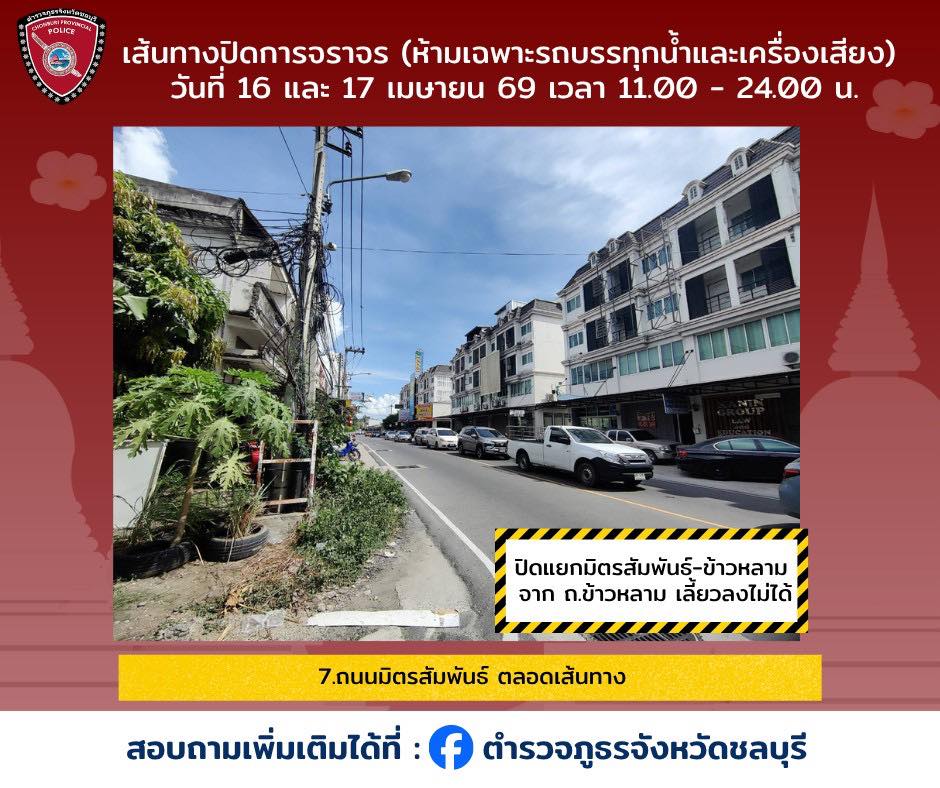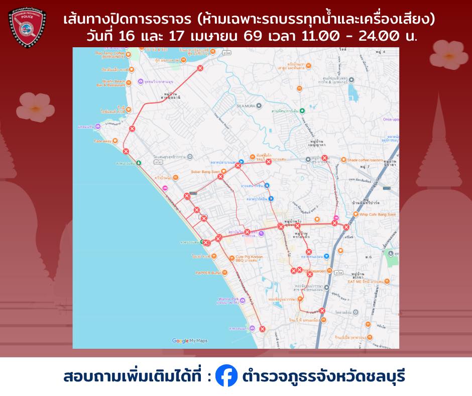 ข้อห้ามสำคัญ: ขอความร่วมมือ "งด" รถบรรทุกน้ำ และรถที่ติดตั้งเครื่องเสียงขนาดใหญ่ เข้าสู่ถนนเส้นเลียบหาดและพื้นที่จัดงานหลัก เพื่อระบายรถเล็กและรถสาธารณะให้เคลื่อนตัวได้ และป้องกันอุบัติเหตุร้ายแรง