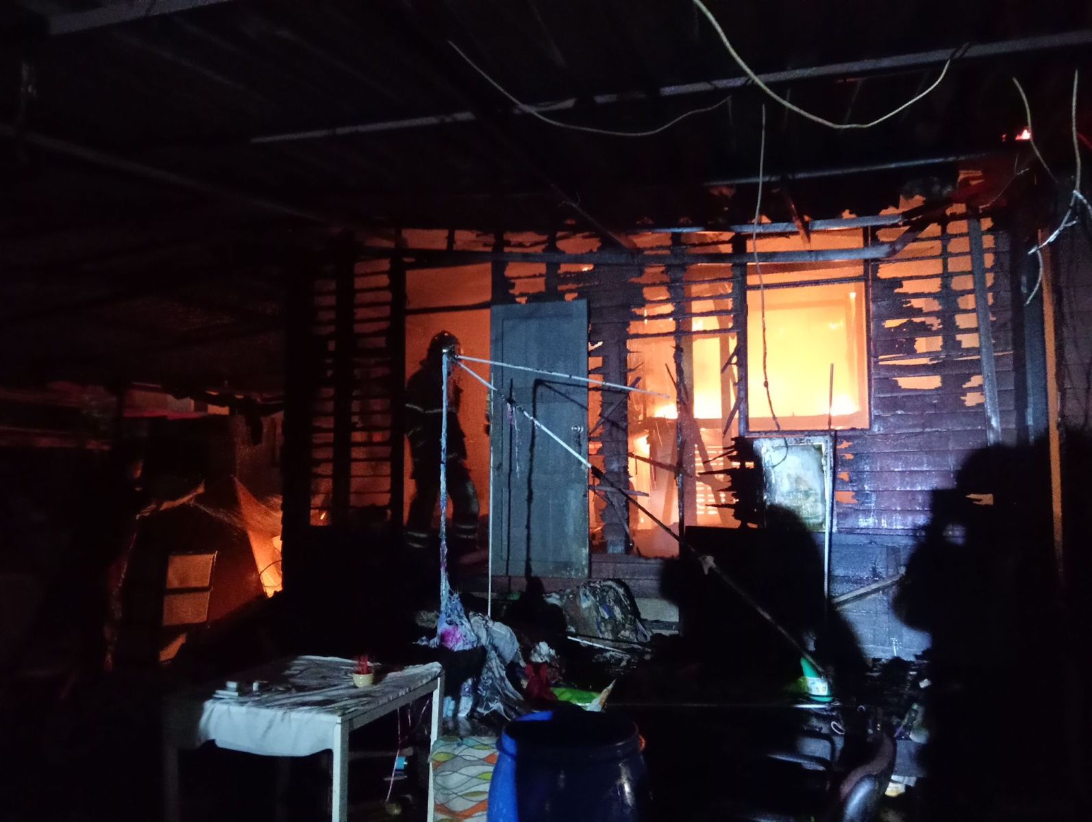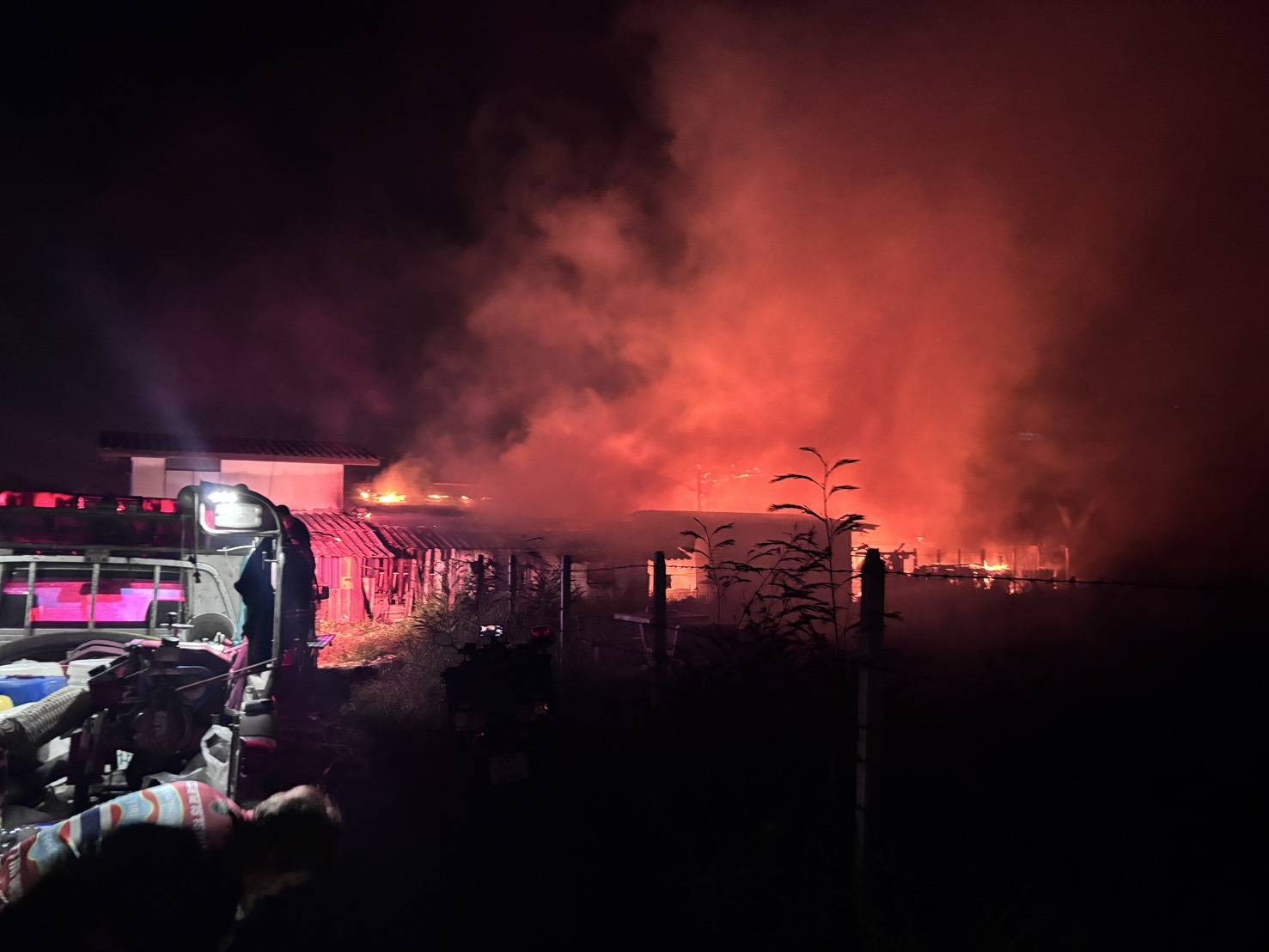 เวลา 22.00 น. ขณะนี้เพลิงลุกไหม้เสียหายแล้วจำนวน 2 หลังคาเรือน เจ้าหน้าที่อยู่ระหว่างสกัดกั้นการติดต่อลุกลาม