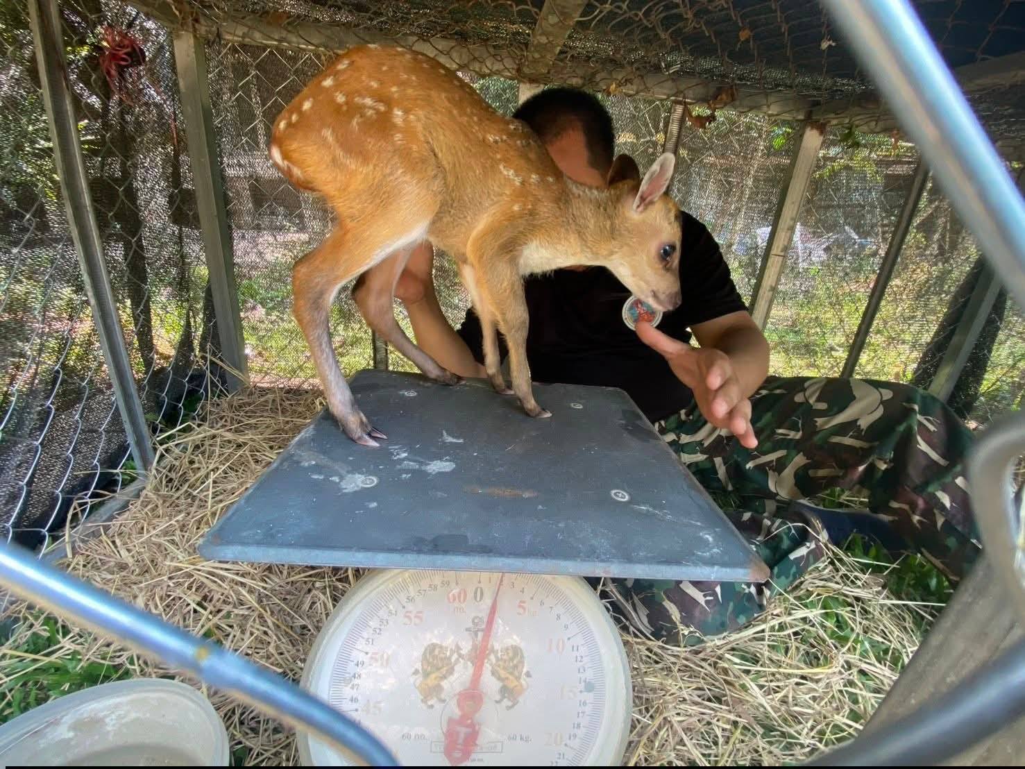 จากการดูแลอย่างใกล้ชิดของทีมสัตวแพทย์และเจ้าหน้าที่ ชีวิตใหม่ของลูกเก้งน้อยก็ได้เริ่มต้นขึ้นอีกครั้งหลังจากได้รับการตรวจสุขภาพ พบว่าร่างกายโดยรวมแข็งแรงดี เริ่มมีการฝึกป้อนนมเพื่อให้ได้รับสารอาหารทดแทน