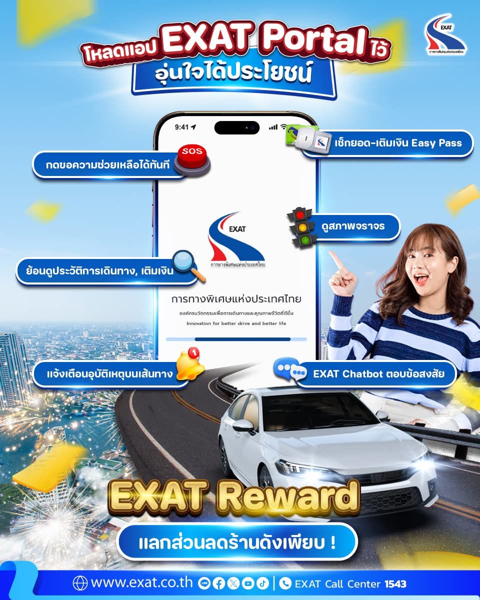 สอบถามข้อมูลเพิ่มเติมได้ที่ EXAT Call Center (เอ็กแซท คอลเซ็นเตอร์) 1543 ตลอด 24 ชั่วโมง