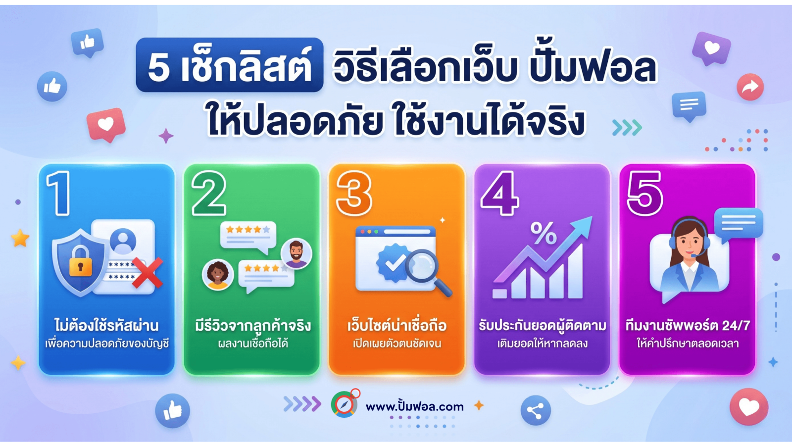 การเลือกใช้บริการ ปั้มฟอลไม่ใช่เรื่องผิด หากคุณใช้งานอย่างชาญฉลาดและมีจุดประสงค์เพื่อการสร้าง Social Proof ในระยะเริ่มต้น กุญแจสำคัญคือการเลือกเว็บไซต์ที่น่าเชื่อถือ ไม่ขอรหัสผ่าน มีการรับประกันยอด และมีบริการหลังการขายที่ดี