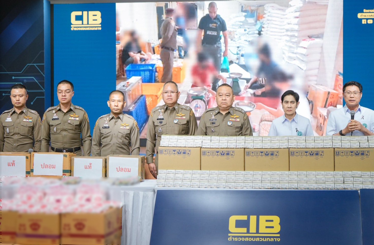 17 เม.ย 69 ที่กองบัญชาการตำรวจสอบสวนกลาง (CIB) พล.ต.ท.ณัฐศักดิ์ เชาวนาศัย ผบช.ก. ร่วม บก.ปอศ.,สำนักงานคณะกรรมการอาหารและยา แถลงข่าวร่วมกันจับกุมผู้ต้องหา 7 ราย แจ้งดำเนินคดีในความผิดตามพระราชบัญญัติเครื่องหมายการค้า พ.ศ. 2534 ฐาน“ร่วมกันปลอมและมีไว้เพื่อจำหน่ายซึ่งสินค้าที่มีเครื่องหมายการค้าปลอมเครื่องหมายการค้าของบุคคลอื่นที่ได้จดทะเบียนแล้วในราชอาณาจักรฯ” พร้อมยึดของกลาง ผงชูรสปลอมเครื่องหมายการค้า 4,804 ซอง ผงนัวปลอมเครื่องหมายการค้า 1,532 ซอง รถกระบะตู้ทึบ 1 คัน กล่องเปล่าที่รับซื้อมาจากร้านขายของเก่า เครื่องชั่ง ภาชนะ รวมของกลางทั้งสิ้น 24,918 ชิ้น