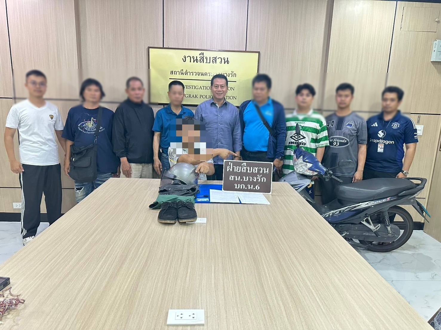 วันที่ 17 เมษายน 2569 ภายใต้การอำนวยการของ พ.ต.อ.ธรรมศักดิ์ สารบุญ ผกก.สน.บางรัก พร้อมด้วยเจ้าหน้าที่ฝ่ายสืบสวน สน.บางรัก นำโดย จ.ส.ต.วัชรพล บุญคำมูล ได้ร่วมกันทำการจับกุมตัว นายปอ (นามสมมุติ) อายุ 33 ปี ผู้ต้องหาในคดีลักทรัพย์ พร้อมของกลางเป็นรถจักรยานยนต์ ยี่ห้อฮอนด้า เวฟ 110 สีน้ำเงิน-เทา หมายเลขทะเบียน กทม.