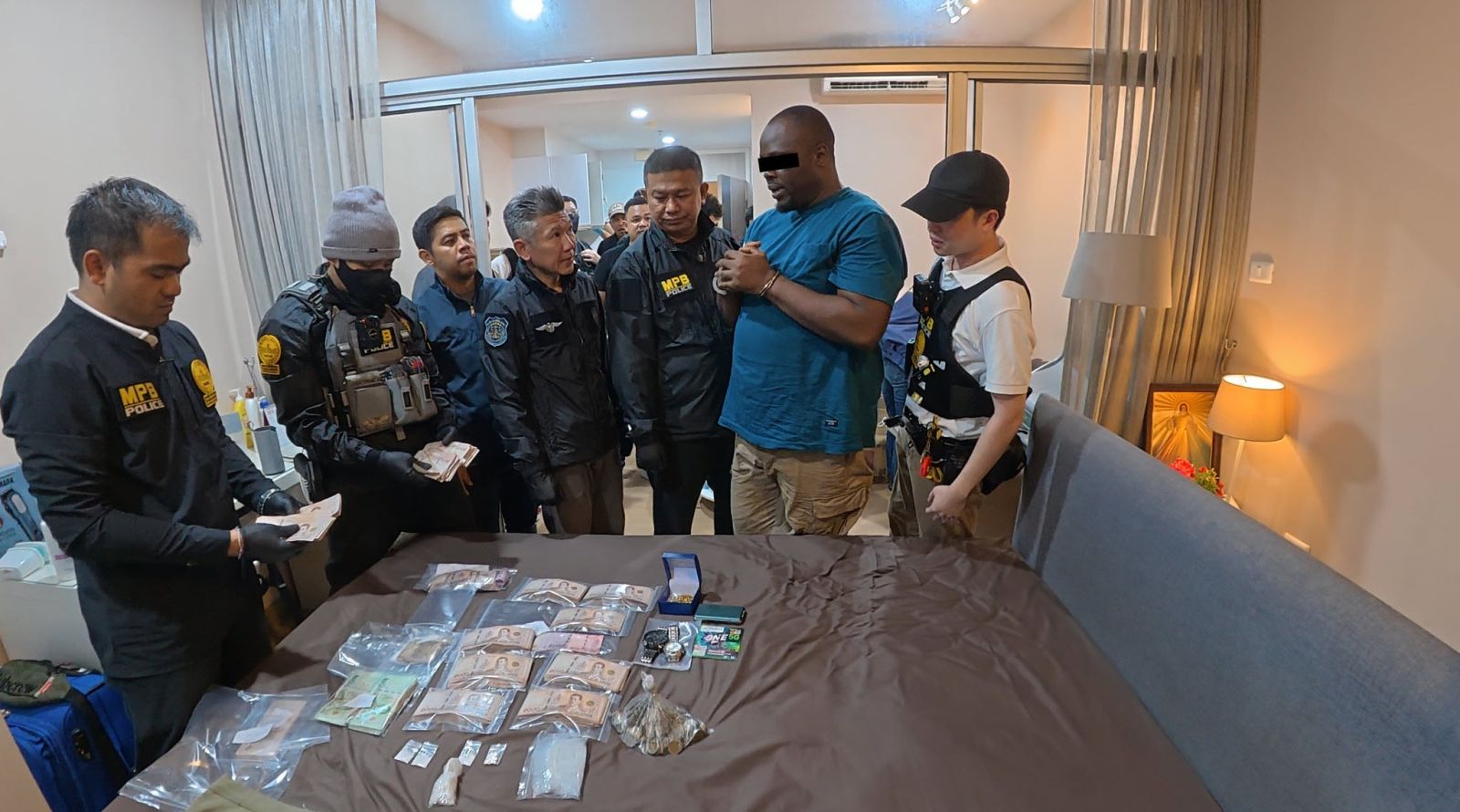 ในชั้นจับกุม ผู้ต้องหาผิวสี ได้ให้การรับสารภาพตลอดข้อกล่าวหา โดยให้การว่า ไม่คิดว่าตำรวจจะไปเปิดเจอเงินบนฝ้าเพดานห้องน้ำ เงินนั้นเป็นเงินที่ได้มาจากประเทศไนจีเรีย โดยที่เอาไปซ่อนไว้บนฝ้าเพดานนั้นไม่ได้เป็นการซ่อน แต่คือการเก็บรักษา การโดนจับครั้งนี้ทำให้ตนเองรู้สึกช็อคมากเพราะทำมานานไม่คิดว่าจะมาโดนจับได้
