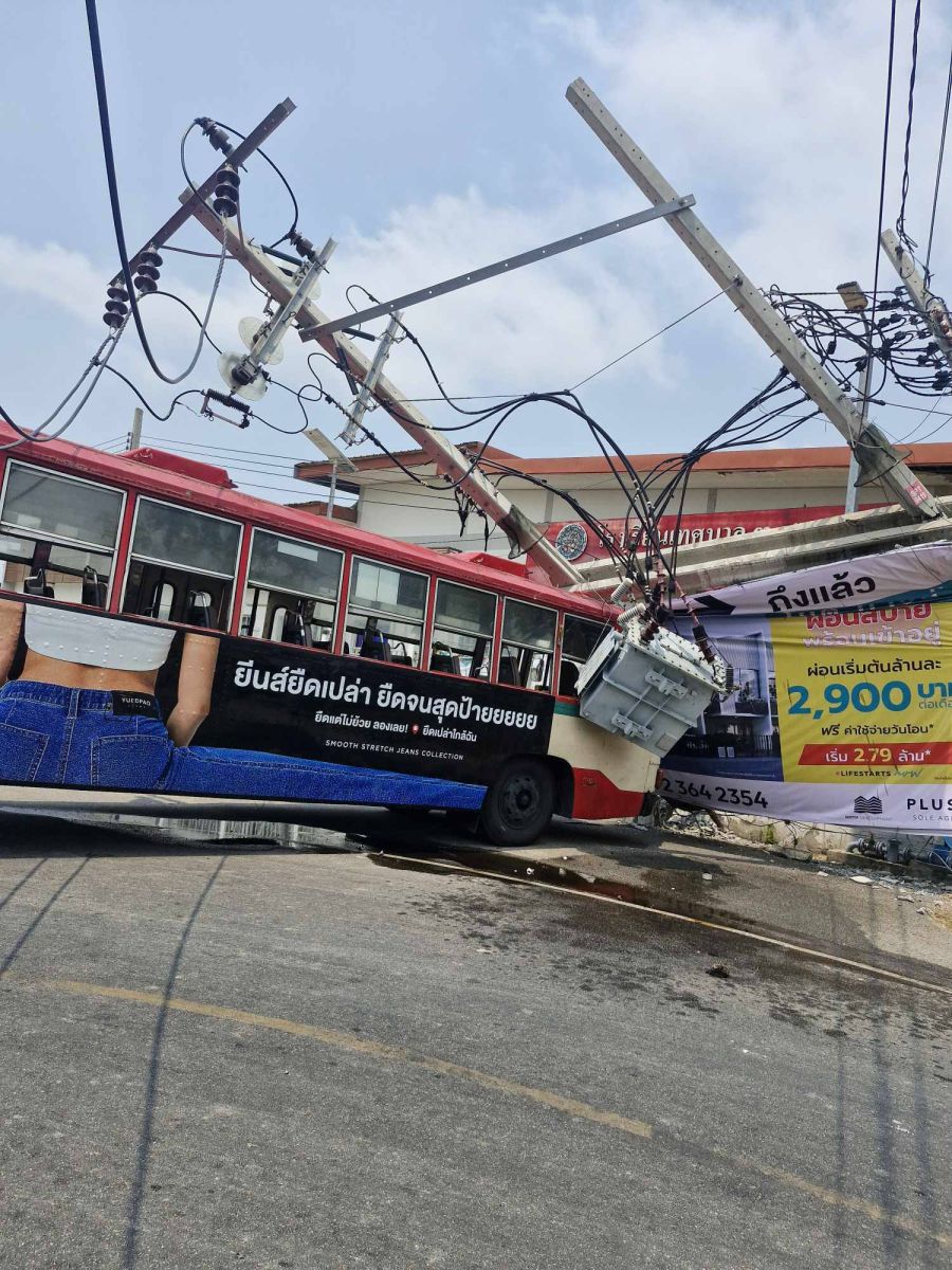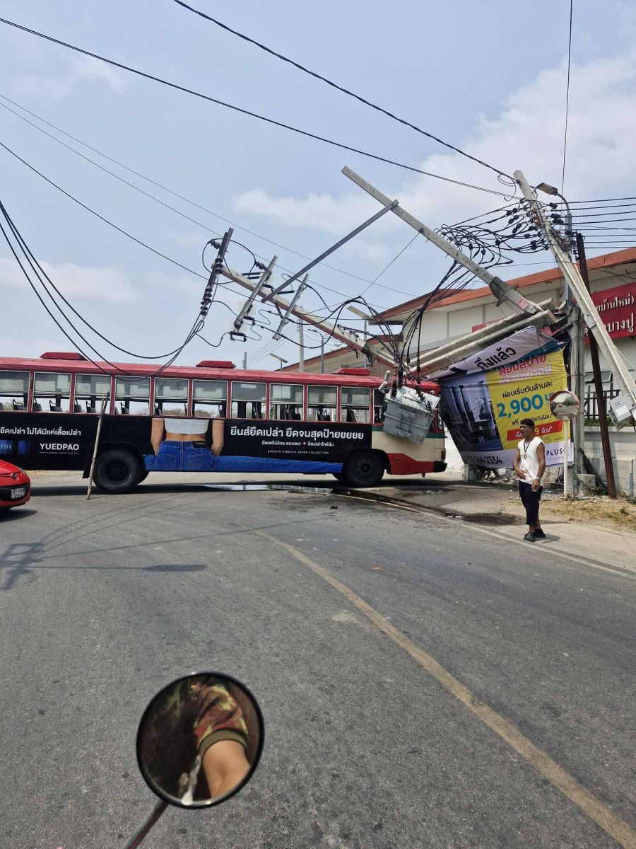 อุบัติเหตุ ภายในซอยเทศบาลบางปู 39 (ซอยบ่อดิน) หน้าโรงเรียนเทศบาล 3 ท้ายบ้านใหม่ สมุทรปราการ รถประจำทางชนเสาไฟฟ้าหักโค่น กีดขวางทุกช่องทาง แนะเลี่ยงการจราจรติดขัดหนักมาก #รายงานจราจร #รถติด #อุบัติเหตุ #FM91