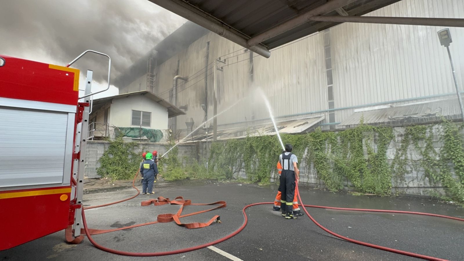 จากการตรวจสอบที่เกิดเหตุเป็นอาคารคอนกรีตขนาดใหญ่สูง 4 ชั้น เป็นส่วนโรงงานผลิตเลนส์แว่นตา พบมีกลุ่มควันและแสงเพลิงจำนวนมากออกมาจากชั้น 2 ชั้น 3 และชั้น 4 เต็มพื้นที่ จึงได้เร่งฉีดน้ำเพื่อสะกัดเปลวไฟไม่ให้ลุกลาม