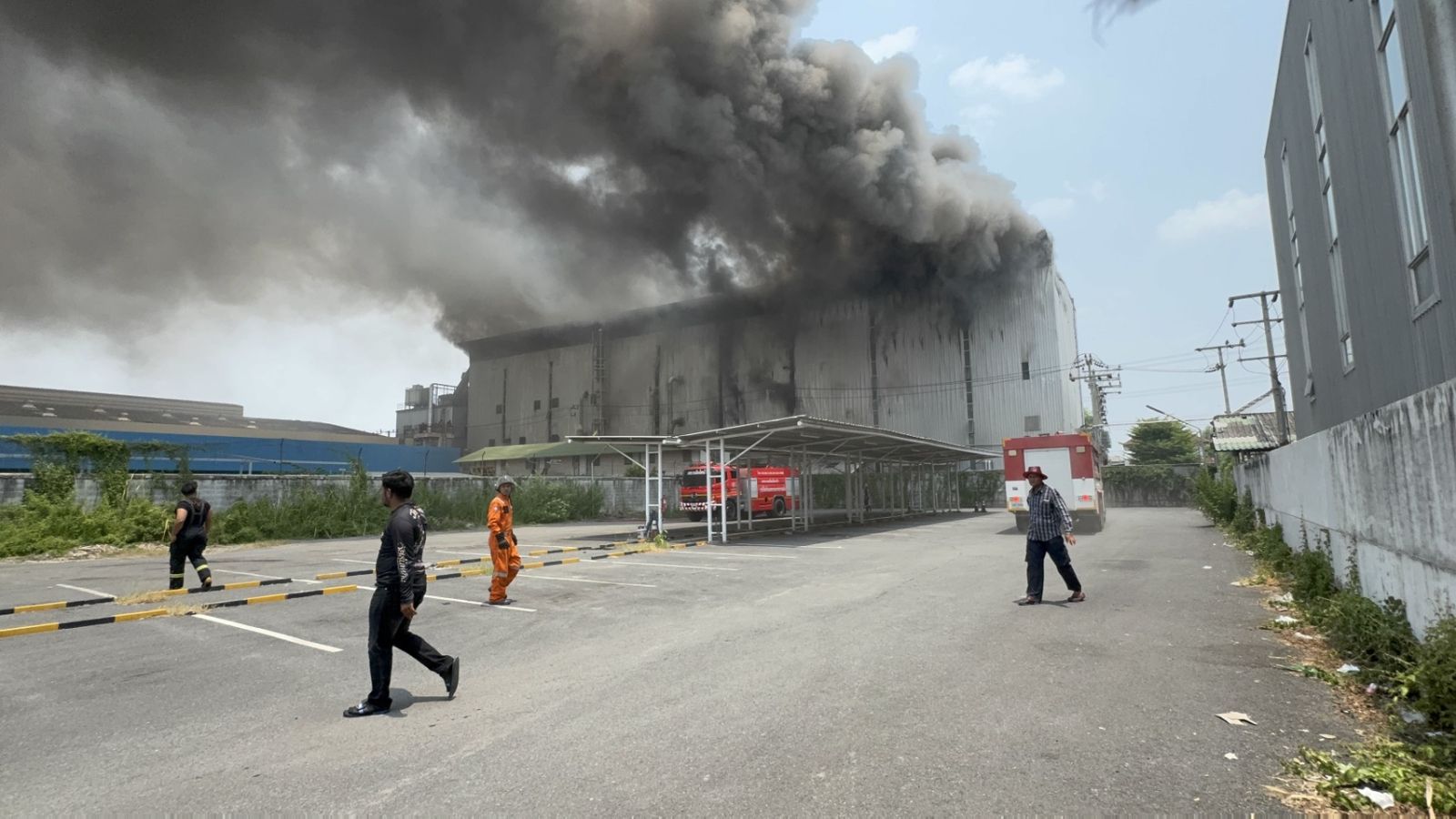 ด้าน นายฮาบีบุลเลาะห์ ชูพุทธพงศ์ ว่าที่สมาชิกสภาเทศบาลเมืองละหาร ซึ่งมาดูที่เกิดเหตุ กล่าวว่า เมื่อมาถึงพบว่าเพลิงไหม้โรงงานซึ่งเป็นอาคารสูง 4 ชั้น ไฟไหม้จากชั้น 2 ขึ้นไปถึงชั้น 4 ซึ่งเป็นโรงงานผลิตเลนส์แว่นตารวมทั้งแว่นตา และอุปกรณ์ทางการแพทย์ ซึ่งขณะเกิดเหตุมีคนงานทำงานอยู่เขาก็ช่วยกันขนของออกมา ซึ่งคนงานที่ทำงานอยู่ปลอดภัยกันทุกคนเพราะลูกหลานคนแถวนี้ก็ทำงานอยู่ด้วย คาดว่าเพลิงจะไหม้เสียหายทั้งหมด