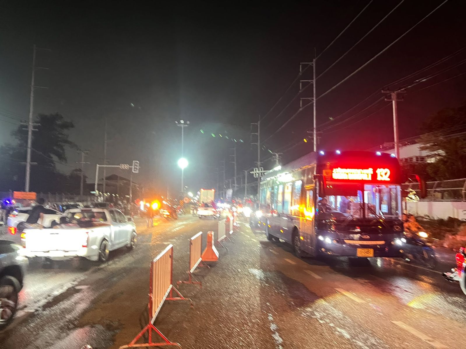 มีประชาชนออกมาเล่นสาดน้ำกันจำนวนมาก ส่งผลให้การจราจรถนนเทพารักษ์ กม.25 - เคหะบางพลี รถติดขัดมาก