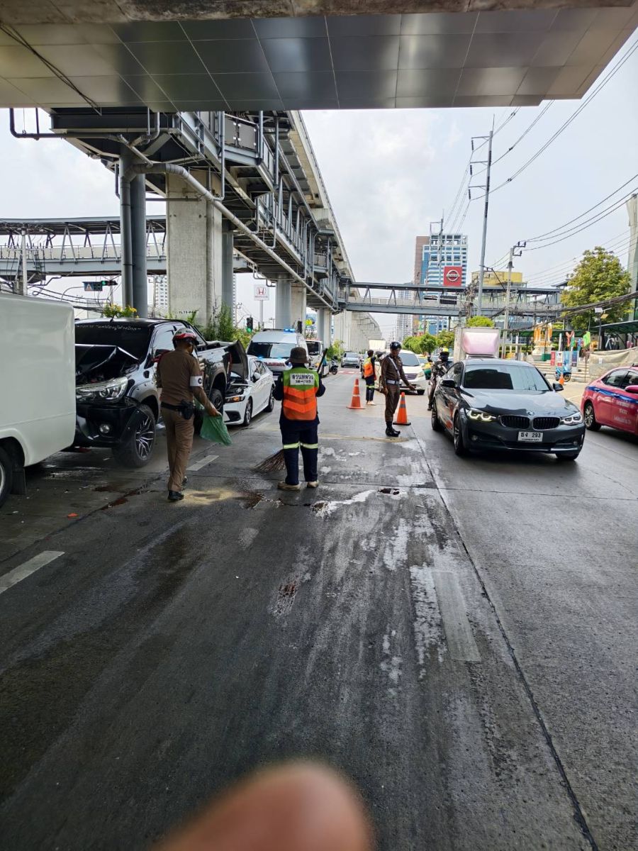ถนนศรีนครินทร์ ขาออก ช่วงหน้าศูนย์การค้าธัญญาพาร์ค ชนท้ายกัน 6 คัน รถติดมาก ท้ายแถวสะสมตัดถนนกรุงเทพกรีฑา #รถติด #อุบัติเหตุ #รายงานจราจร