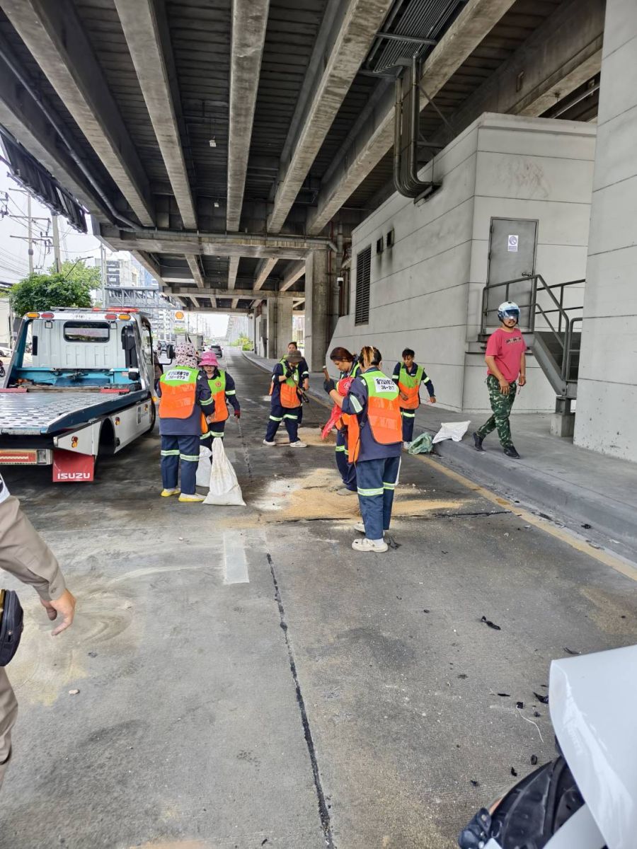 13.43 น. เจ้าหน้าที่กำลังเคลียร์ และทำความสะอาดคราบน้ำมัน