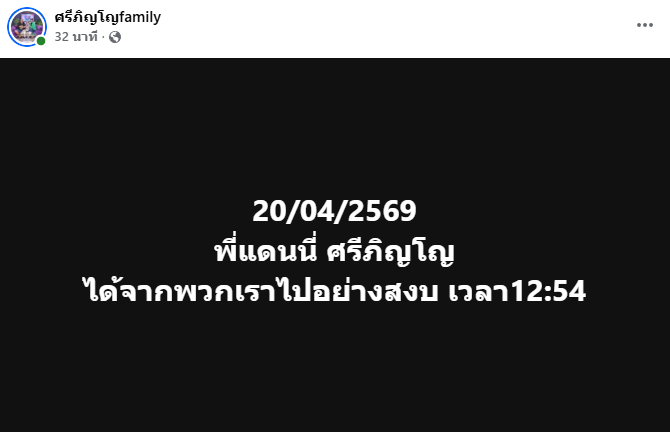 20 เม.ย.69 เพจ "ศรีภิญโญfamily" แจ้งข่าวเศร้า "แดนนี่ ศรีภิญโญ" อดีตนักแสดงตลกชื่อดัง เสียชีวิตแล้วอย่างสงบเมื่อช่วงเที่ยงที่ผ่านมา หลังเข้ารับการรักษาตัวด้วยอาการไตวาย
