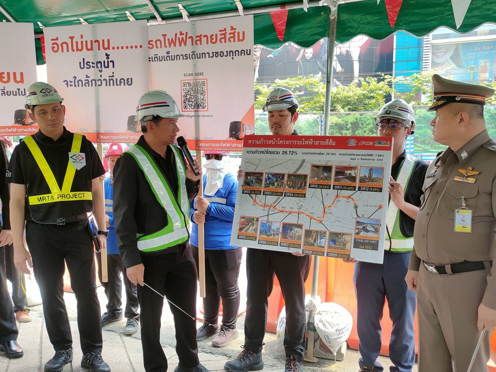 สำหรับความคืบหน้าการดำเนินงานโครงการรถไฟฟ้าสายสีส้ม ช่วงบางขุนนนท์ - ศูนย์วัฒนธรรมแห่งประเทศไทย ณ สิ้นเดือนมีนาคม 2569 ภาพรวมมีความก้าวหน้าร้อยละ 26.72 คิดเป็นความก้าวหน้างานโยธา ร้อยละ 29.19 และความก้าวหน้างานระบบรถไฟฟ้า ร้อยละ 7.86 ส่วนโครงการรถไฟฟ้าสายสีส้ม ช่วงศูนย์วัฒนธรรมแห่งประเทศไทย - มีนบุรี (สุวินทวงศ์) ซึ่งมีงานติดตั้งระบบรถไฟฟ้าอยู่นั้น ปัจจุบันมีความก้าวหน้าร้อยละ 48.73 ติดตามข้อมูลโครงการฯ เพิ่มเติมได้ที่เว็บไซต์โครงการรถไฟฟ้าสายสีส้ม ช่วงบางขุนนนท์ - ศูนย์วัฒนธรรมแห่งประเทศไทย