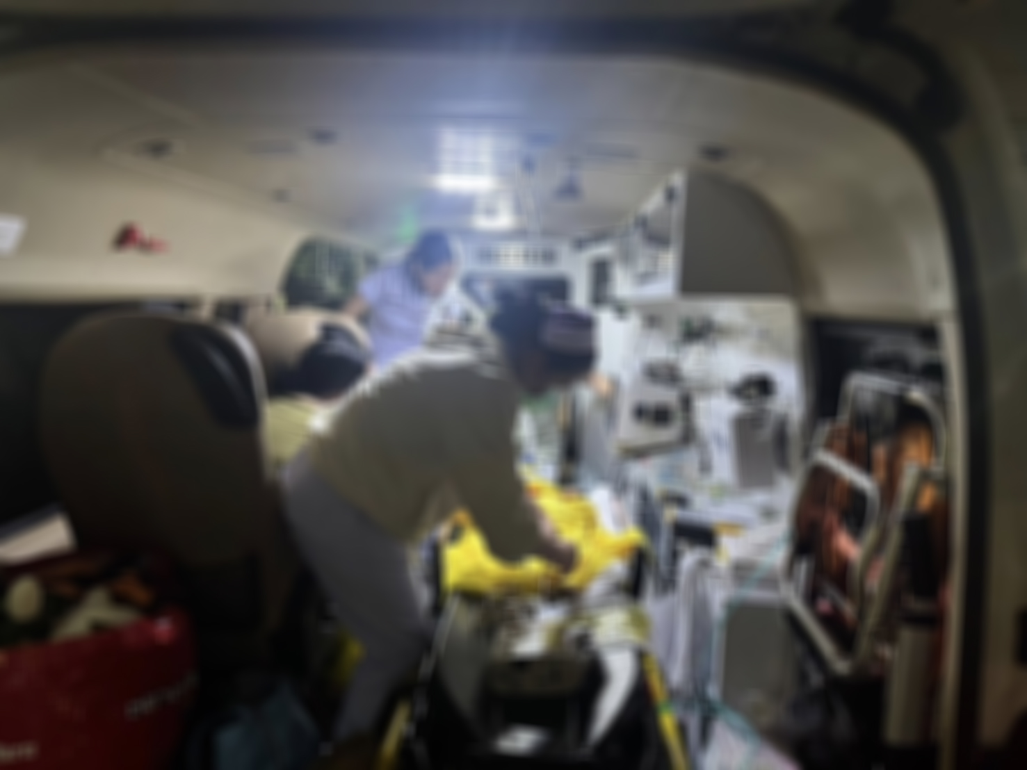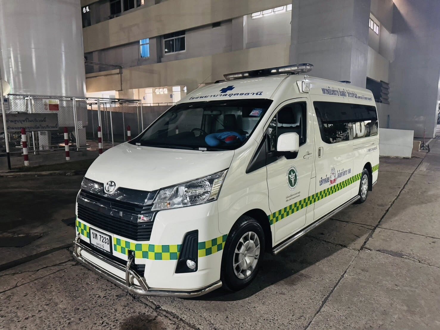 โดยมีแพทย์กับพยาบาลบนรถ รับแจ้งจากหมอ ให้ถึงโรงพยาบาลรามาธิบดี ก่อนเวลา 10.30 น. ขอความอนุเคราะห์อำนวยในเส้นทางด้วยนะครับผม