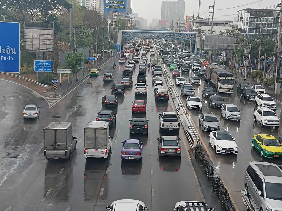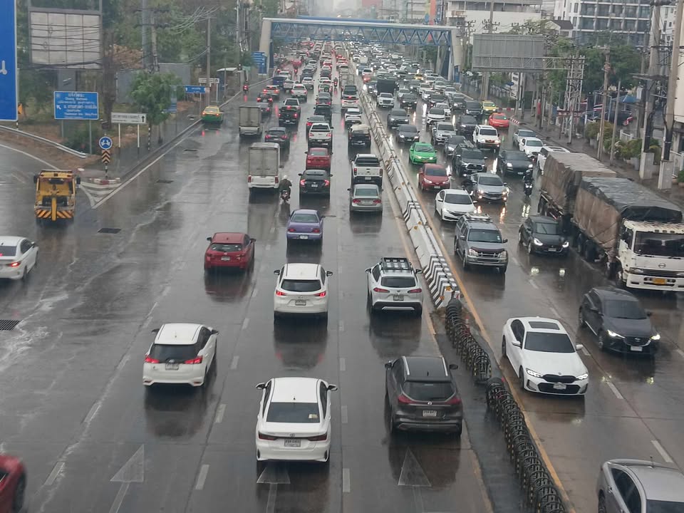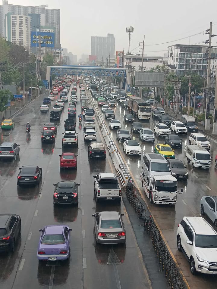 11.25 น. ติดขัดหนักมาก! ถนนงามวงศ์วาน ผ่านใต้ทางด่วนงามวงศ์วาน ฝั่งขาเข้า ท้ายแถวสะสมอยู่ที่หน้าโรงแรมแกรนด์ริชมอนด์ ส่วนฝั่งขาออก ท้ายแถวสะสมอยู่ที่เชิงทางขึ้นสะพานข้ามแยกบางเขน ฝนกำลังตกหนัก #รายงานจราจร #รถติด #ฝนตด #FM91
