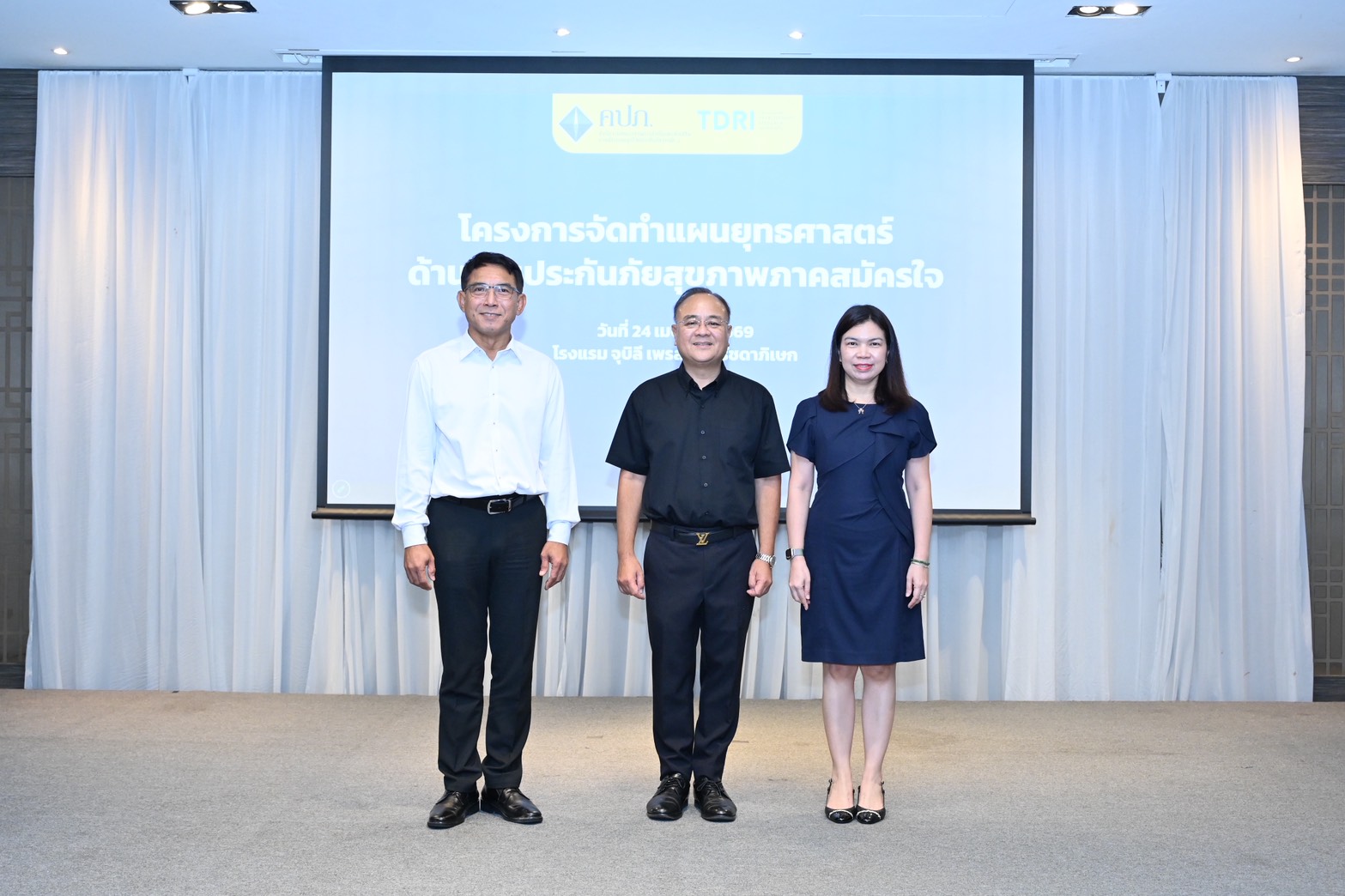 เมื่อวันศุกร์ที่ 24 เมษายน 2569 สำนักงานคณะกรรมการกำกับและส่งเสริมการประกอบธุรกิจประกันภัย (สำนักงาน คปภ.) โดย นายชูฉัตร ประมูลผล เลขาธิการคณะกรรมการกำกับและส่งเสริมการประกอบธุรกิจประกันภัย (เลขาธิการ คปภ.) เป็นประธานในพิธีแถลงข่าวเปิดงานสัมมนา “ผลการศึกษาโครงการจัดทำแผนยุทธศาสตร์ประกันภัยสุขภาพภาคสมัครใจของไทย” เพื่อร่วมกำหนดทิศทางการพัฒนาระบบประกันภัยสุขภาพของประเทศในระยะยาว โดยมีหน่วยงานภาครัฐ ภาคธุรกิจประกันภัย ภาคสาธารณสุข และสถาบันวิจัยเพื่อการพัฒนาประเทศไทย (TDRI) เข้าร่วม ณ โรงแรมจูบิลี เพรสทีจ กรุงเทพมหานคร
