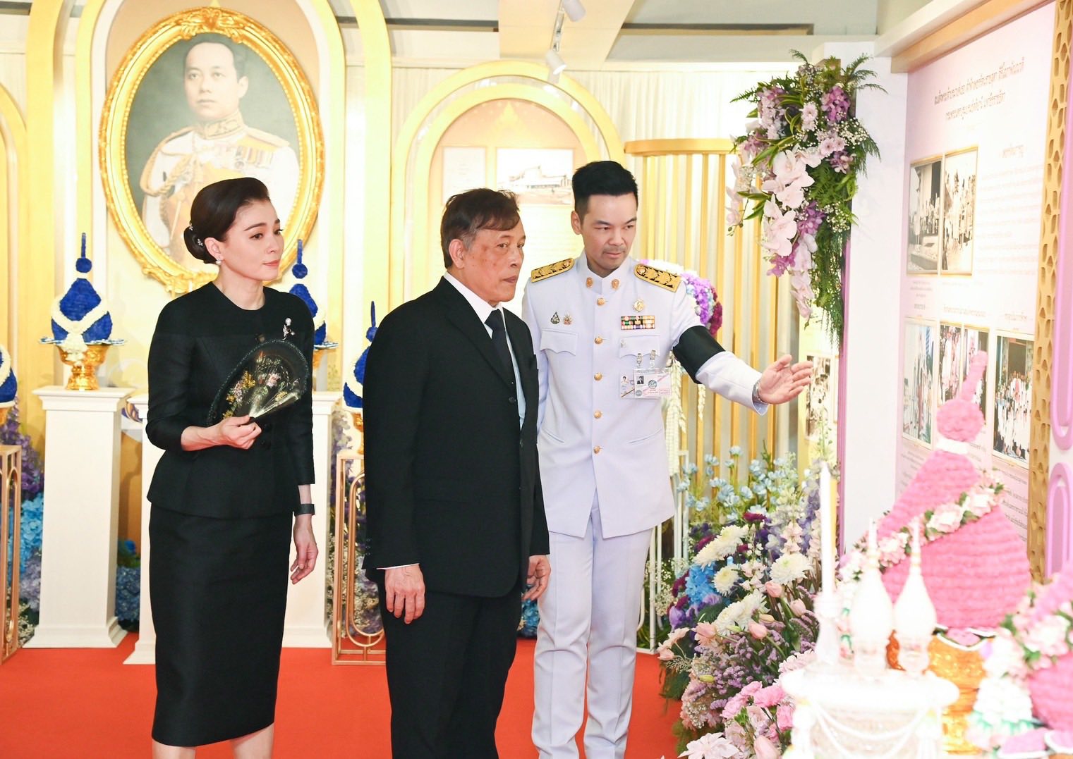 ต่อมาเสด็จฯ ถึงโถงภายในอาคารลุมพินีสถาน ทอดพระเนตรนิทรรศการพระราชประวัติ และพระราชกรณียกิจ พระบาทสมเด็จพระปรเมนทรรามาธิบดีศรีสินทรมหาวชิราวุธ พระมงกุฎเกล้าเจ้าอยู่หัว พระมหาธีรราชเจ้า ผู้ทรงวางรากฐานสำคัญต่อการพัฒนาประเทศ นำไปสู่ความสมัยใหม่ ยังผลให้มหาชนชาวสยาม มีความผาสุกสืบมาตราบเท่าทุกวันนี้