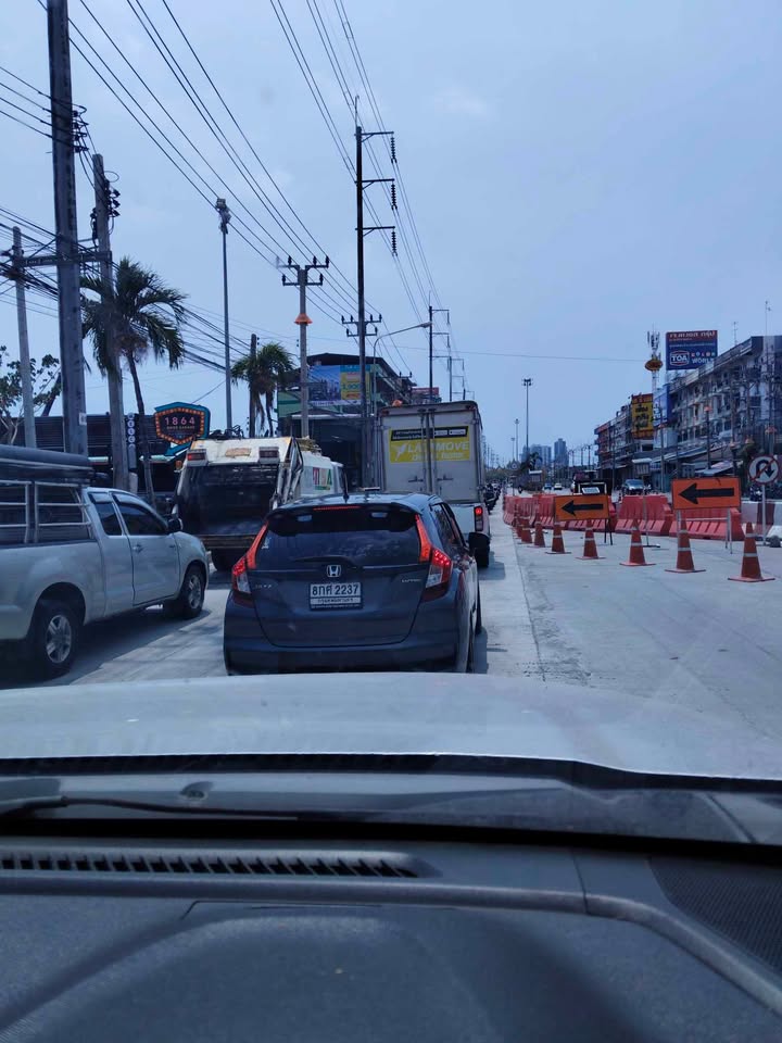 13.43 น. ถนนแพรกษา ขาเข้า ช่วงซอยเทศบาลบางปู 39 มีแนวแบริเออร์ ปิดเบี่ยงแนวก่อสร้าง รถวิ่งได้ 2 ช่องทาง และมีรถกระบะจอดเสีย ก่อนถึงซอยเทศบาลบางปู 39 เล็กน้อย ช่องทางซ้าย ติดหนักมาก #รายงานจราจร #รถติด #รถจอดเสีย #FM91