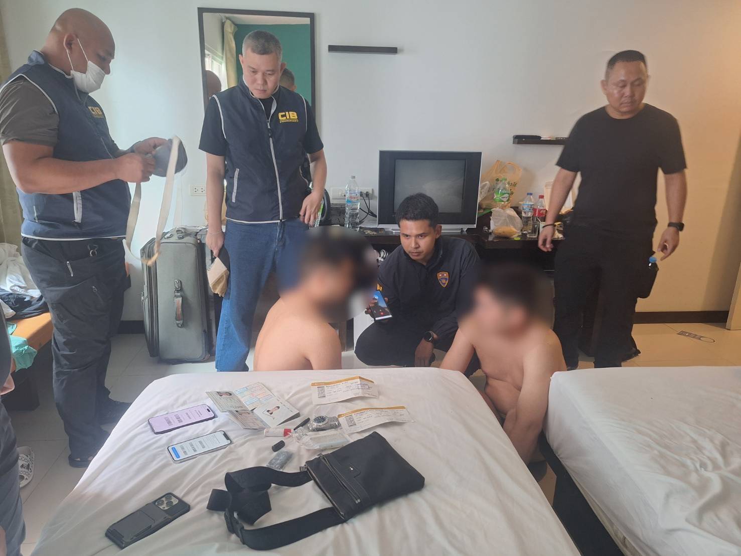 ต่อมาเจ้าหน้าที่ตำรวจสากลบิชเคก ได้ประสานความร่วมมือผ่านองค์การตำรวจอาชญากรรมระหว่างประเทศ (INTERPOL) เพื่อขอให้ออกหมายแดงติดตามจับกุมบุคคลทั้งสองรายดังกล่าวในฐานะผู้ต้องหาสำคัญซึ่งเป็นบุคคลที่สาธารณรัฐคีร์กีชสถาน ต้องการตัวและได้ออกหมายจับไว้ ภายหลังได้ประสานข้อมูลให้เจ้าหน้าที่ตำรวจกก.5 บก.ป. ได้ทำการสืบสวนติดตามอย่างใกล้ชิด จนกระทั่งทราบว่าผู้ต้องหาตามหมายแดง ได้หลบหนีมาเช่าโรงแรมอยู่ที่ จ.ภูเก็ต จากนั้น เจ้าหน้าที่ตำรวจ กก.5 บก.ป. ร่วมกับ เจ้าหน้าที่ตำรวจ ตม.จว.ภูเก็ต จึงได้เข้าควบคุมตัวบุคคลดังกล่าวไว้ได้ พร้อมดำเนินการตามขั้นตอนของกฎหมายตรวจคนเข้าเมือง โดยเพิกถอนการอนุญาตให้อยู่ในราชอาณาจักรและเตรียมผลักดันส่งกลับไปยังสาธารณรัฐคีร์กีชสถาน เบื้องต้นผู้ต้องหา ให้การปฏิเสธทุกข้อกล่าวหา