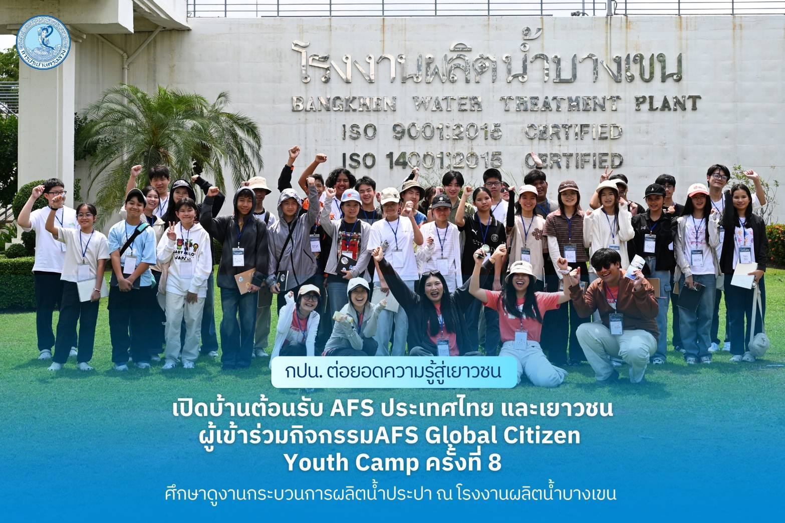 เมื่อวันที่ 24 เมษายน พ.ศ. 2569 เวลา 09.30 น. ณ ห้องประชุมชั้น 2 อาคารอำนวยการ โรงงานผลิตน้ำบางเขน นางสาวสุวรา ทวิชศรี ผู้ว่าการการประปานครหลวง (กปน.) ให้การต้อนรับคณะจากมูลนิธิการศึกษาและวัฒนธรรมสัมพันธ์ไทย – นานาชาติ (AFS ประเทศไทย) และเยาวชนผู้เข้าร่วมกิจกรรม AFS Global Citizen Youth Camp ครั้งที่ 8 ศึกษาดูงานเกี่ยวกับกระบวนการผลิตน้ำประปา