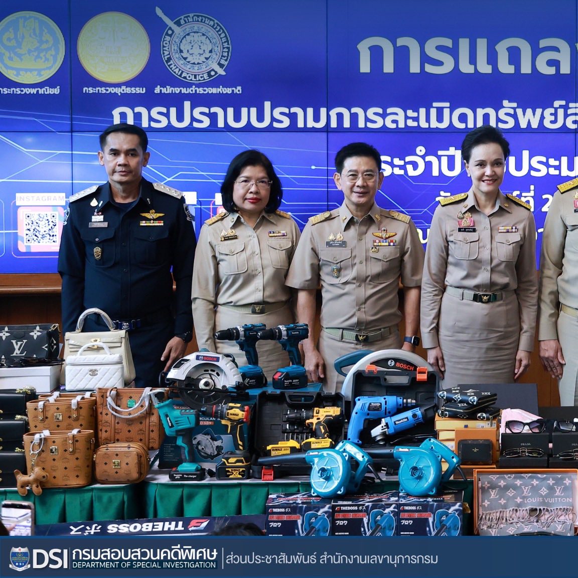 DSI ร่วมแถลงผลงานการปราบปรามการละเมิดทรัพย์สินทางปัญญา 6 เดือน จับ 332 คดี ยึดของกลางกว่า 1.3 ล้านชิ้น มูลค่าเสียหายทะลุ 2,300 ล้านบาท