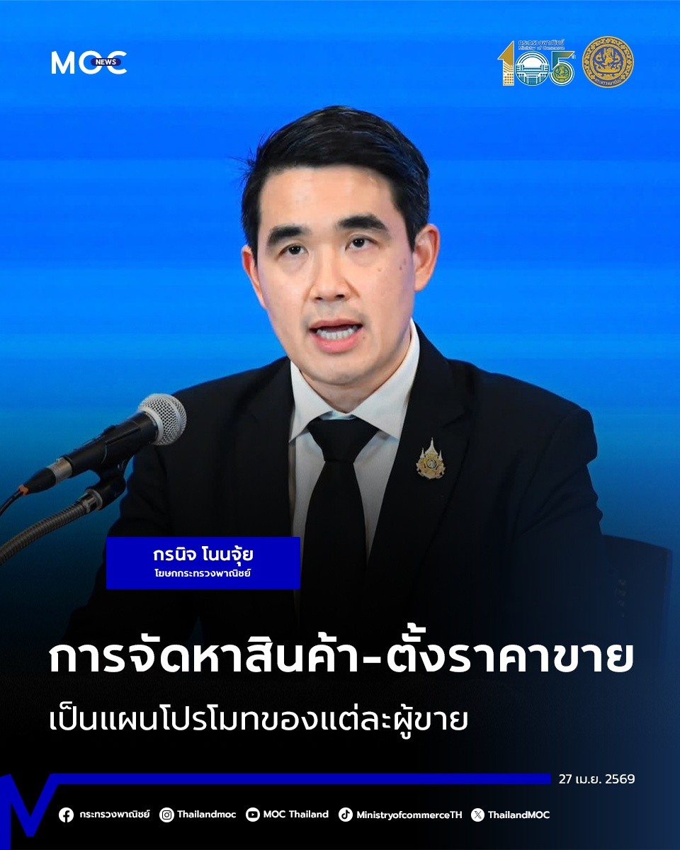 วันนี้ (28 เม.ย. 69) นายกรนิจ โนนจุ้ย โฆษกกระทรวงพาณิชย์ ชี้แจงกรณีอินฟลูเอนเซอร์ชื่อดัง “พิมรี่พาย” ไลฟ์สดจำหน่ายทุเรียนจำนวนมาก โดยระบุว่าเป็นการช่วยเกษตรกรกระจายผลผลิตผ่านระบบ Live Commerce ให้เข้าถึงผู้บริโภคได้รวดเร็วขึ้น ซึ่งสอดคล้องกับนโยบายรัฐที่ต้องการขยายช่องทางตลาดใหม่ๆ อย่างไรก็ตาม กระทรวงฯ ยืนยันว่าไม่มีนโยบายสนับสนุนผู้ประกอบการรายใดเป็นพิเศษ และการกำหนดโปรโมชันต้องเป็นไปตามการตกลงที่เกษตรกรพอใจและสอดคล้องกับต้นทุนจริง