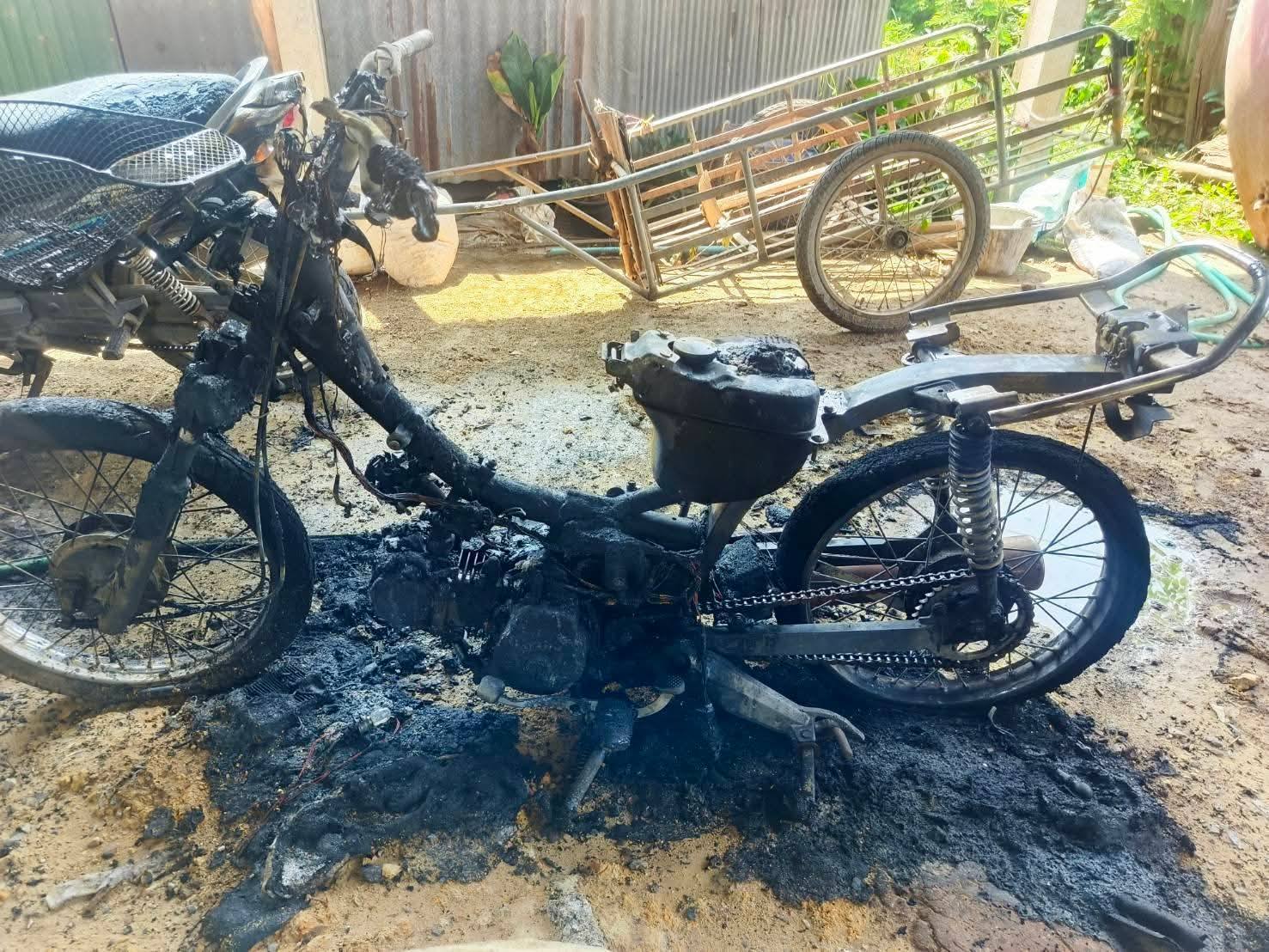 ไฟไหม้รถจักรยานยนต์ เสียหายวอด 2 คัน ที่หล่มเก่า จ.เพชรบูรณ์ เจ้าหน้าที่พร้อมรถดับเพลิงระดมฉีดน้ำควบคุมได้ ก่อนจะลุกลามเข้าตัวบ้าน