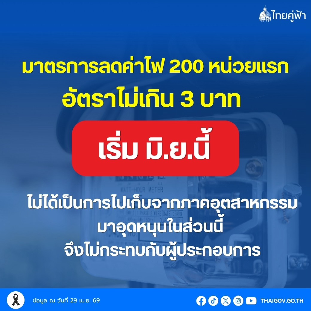 นายเอกนัฏกล่าวต่อว่า เรื่องที่ 2 มีมติเห็นชอบอัตราค่าไฟฟ้า สำหรับบ้านอยู่อาศัยทุกครัวเรือน ไม่เกี่ยวข้องกับประเภทกิจการ ร้านอาหาร ร้านค้า โรงงานอุตสาหกรรม ที่ขอจดใช้ไฟเป็นกิจการขนาดเล็ก ขนาดกลาง และขนาดใหญ่ โดยใช้อัตราค่าไฟแบบก้าวหน้า โดยจะปรับลดค่าไฟสำหรับผู้ใช้ไฟฟ้า 200 หน่วยแรก ราคาต่ำกว่า 3 บาทต่อหน่วย ซึ่งจากการคำนวณแล้วคาดการณ์ว่า ผู้ที่ได้รับผลประโยชน์คือผู้ที่ใช้ไฟไม่เกิน 500 หน่วยต่อเดือน หรือผู้จ่ายค่าไฟต่อเดือนไม่เกิน 2,200 บาท โดยจะได้ใช้ไฟฟ้าในราคาที่ถูกลง โดย 200 หน่วยแรก จะจ่ายค่าไฟต่ำกว่า 3 บาท และหากมากกว่า 200 หน่วย แต่ไม่เกิน 500 หน่วยจะใช้การคำนวณค่าไฟจะใช้อัตราก้าวหน้ามาคิดเป็นค่าเฉลี่ย จะทำให้จ่ายค่าไฟถูกกว่าที่เคยจ่าย