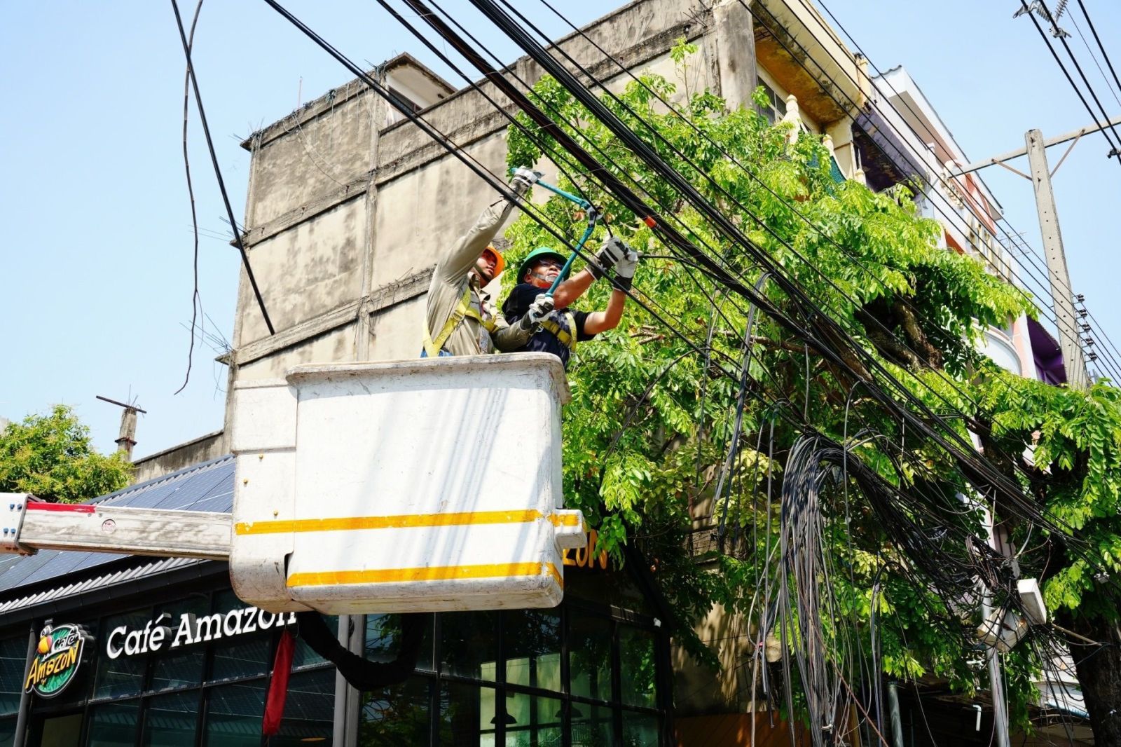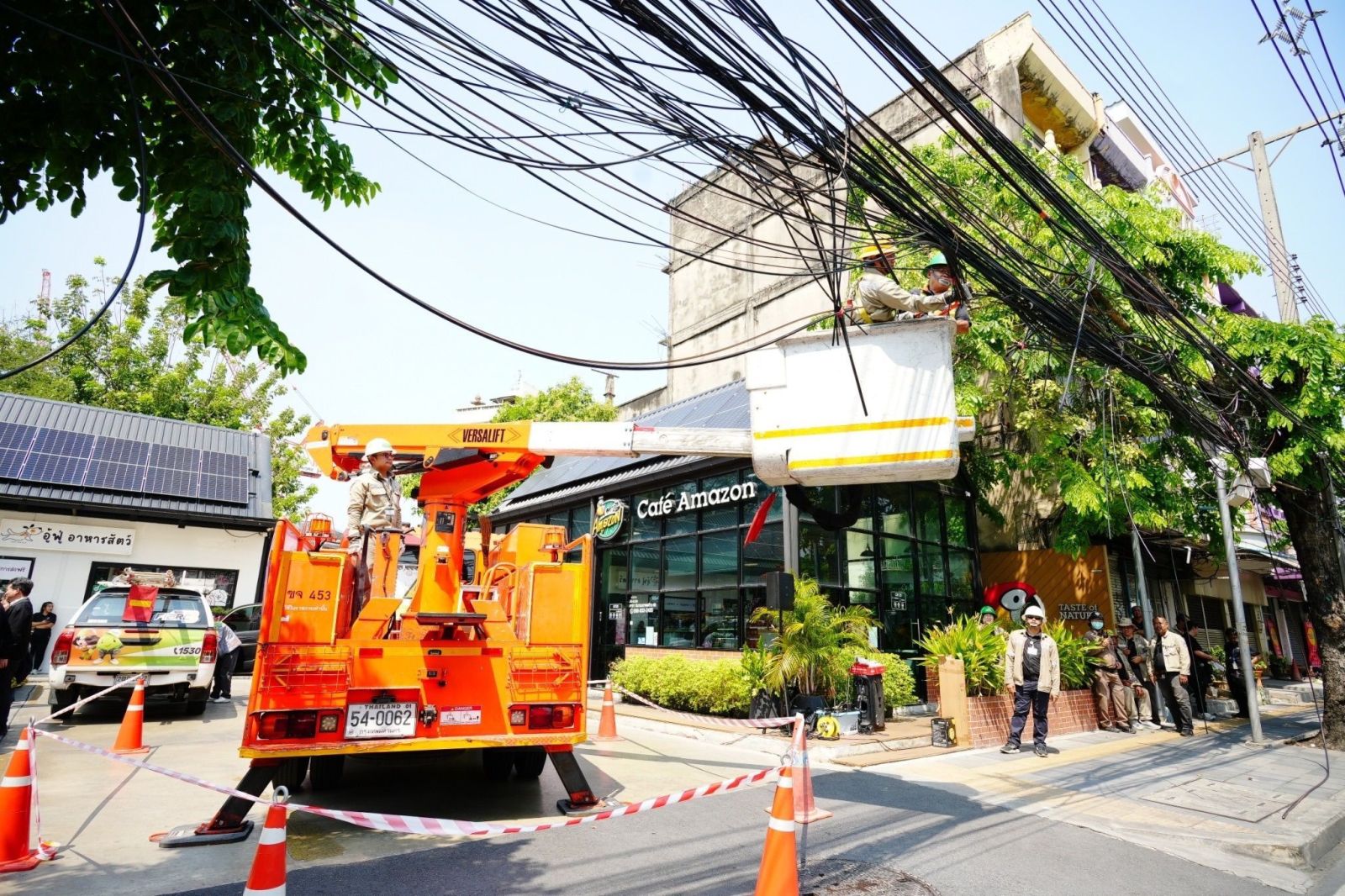 รองผู้ว่าการ MEA กล่าวว่า การจัดระเบียบสายสื่อสารมี 2 แบบ ได้แก่ การนำสายสื่อสารลงใต้ดิน และการจัดระเบียบสายสื่อสารบนเสาไฟฟ้า ซึ่งการไฟฟ้านครหลวงมีความมุ่งมั่นดำเนินการโครงการนำสายสื่อสารลงใต้ดิน ตามแผนของสำนักงาน กสทช. เพื่อให้เกิดความปลอดภัย โดยการนำสายสื่อสารลงใต้ดินจัดระเบียบสายสื่อสารในพื้นที่ถนนลาดพร้าวถือเป็นจุดยุทธศาสตร์สำคัญ เนื่องจากเป็นย่านธุรกิจ และที่พักอาศัยหนาแน่น โดยการดำเนินงานครั้งนี้เน้นการรื้อถอนสายสื่อสารที่ไม่ได้ใช้งานออกทั้งหมด หลังจากนั้นจะรื้อถอนเสาไฟฟ้าออกต่อไป และจัดระเบียบสายสื่อสารที่ยังใช้งานอยู่ให้เป็นระเบียบเรียบร้อยตามมาตรฐานความปลอดภัย รวมถึงการลดความเสี่ยงการเกิดอุบัติเหตุจากสายสื่อสาร และลดโอกาสเกิดเหตุอัคคีภัยจากการลัดวงจร ซึ่งจะส่งผลให้ระบบไฟฟ้ามีความมั่นคง และเสถียรภาพมากยิ่งขึ้น ทั้งนี้ MEA มีแผนดำเนินโครงการนำสายสื่อสารลงใต้ดินและโครงการจัดระเบียบสายสื่อสารอย่างต่อเนื่องตลอดปี 2569 โดยครอบคลุมพื้นที่เศรษฐกิจเพื่อยกระดับคุณภาพชีวิตของประชาชนและสร้างภาพลักษณ์ที่ดีให้แก่ประเทศไทย