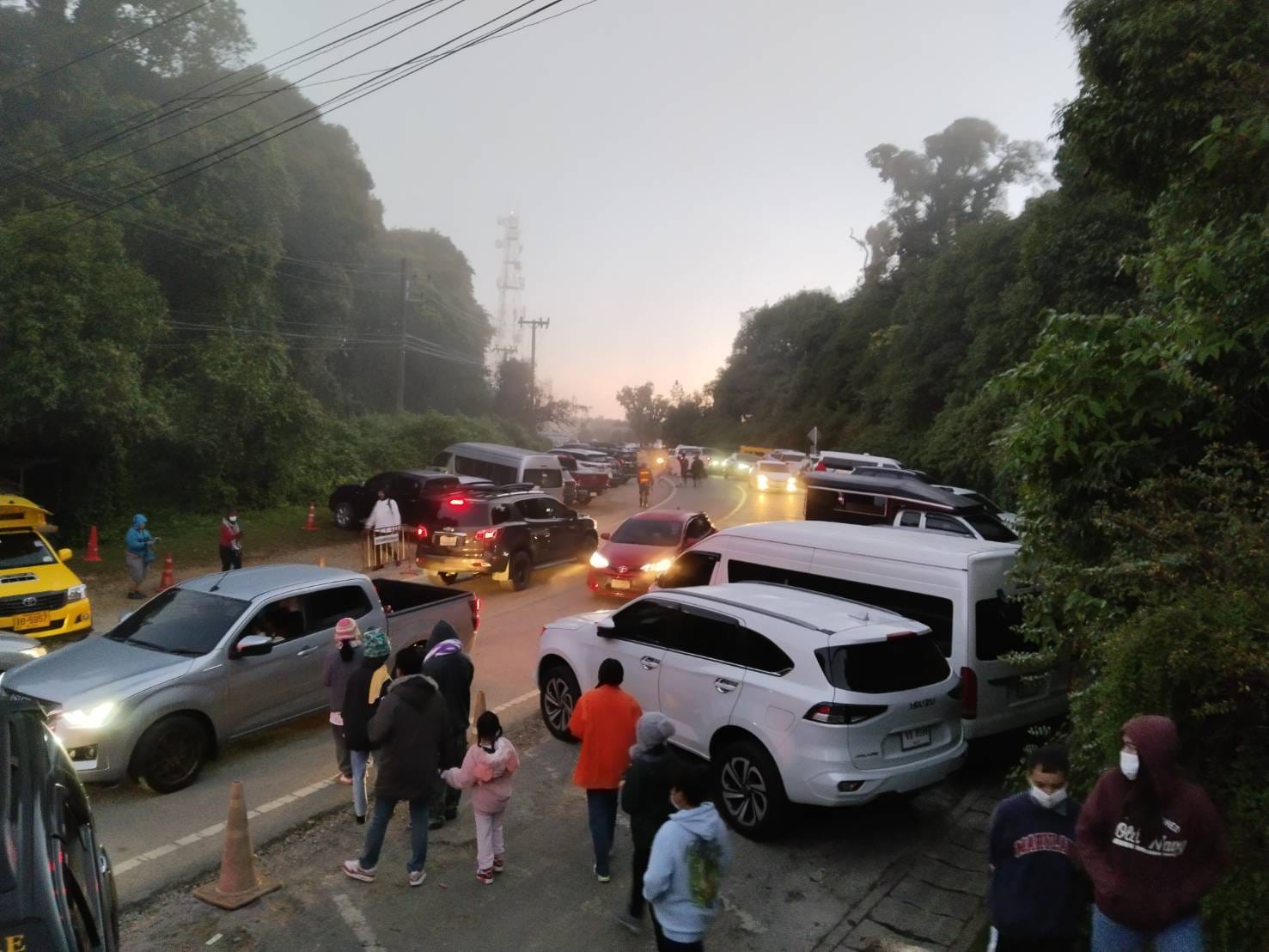 สภาพอากาศบนยอดดอยอินทนนท์ยังคงมีอุณหภูมิเลขตัวเดียว 5 องศา อากาศอยู่ในเกณฑ์หนาวจัด สภาพอากาศปิด หมอกลงจัด นักท่องเที่ยวแห่ขึ้นมาเที่ยวสัมผัสอากาศหนาวบนยอดดอยกันอย่างคึกคัก ส่งผลให้การจราจรติดขัด