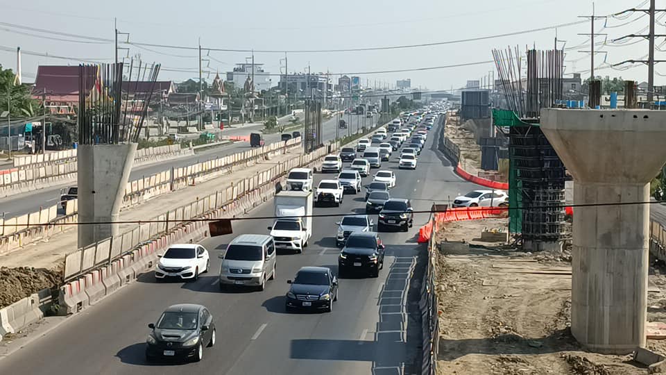 ถนนพระราม 2 ขาออก ผ่านสะพานข้ามแม่น้ำท่าจีน - วัดเกตุมดีศรีวราราม ปริมาณรถเริ่มหนาแน่น เคลื่อนตัวได้ช้า ท้ายแถวสะสมอยู่ที่บนสะพานข้ามทางรถไฟ ส่วนฝั่งกลับเข้า กทม. ยังไม่มีปัญหาการจราจร
