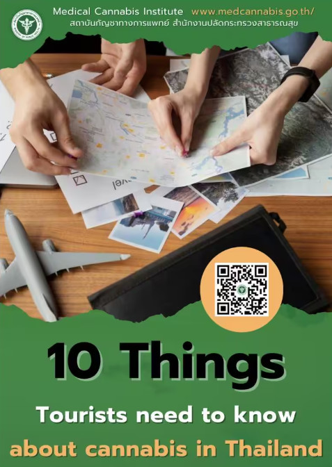 สถาบันกัญชาทางการแพทย์ จึงจัดทำคู่มือสื่อสารเกี่ยวกับกัญชาเพื่อทำความเข้าใจกับนักท่องเที่ยว เบื้องต้นจัดทำเป็นฉบับออนไลน์ชื่อ “10 Things Tourists need to know about cannabis in Thailand” เป็นภาษาอังกฤษผ่านเว็บไซต์กระทรวงสาธารณสุข www.moph.go.th และขอความร่วมมือการท่องเที่ยวจังหวัดช่วยเผยแพร่เอกสารดังกล่าวให้ผู้ประกอบการ รวมถึงจัดแสดงไว้ที่ศูนย์นักท่องเที่ยวทั่วประเทศ เพื่อให้นักท่องเที่ยวเข้าถึงข้อมูลกัญชาที่ถูกต้อง และกำลังจัดทำภาษาอื่นๆ เพิ่มเติม เช่น จีน เกาหลี ญี่ปุ่น รัสเซีย เป็นต้น เพื่อให้นักท่องเที่ยวกลุ่มหลักได้เข้าถึงข้อมูลที่ถูกต้อง