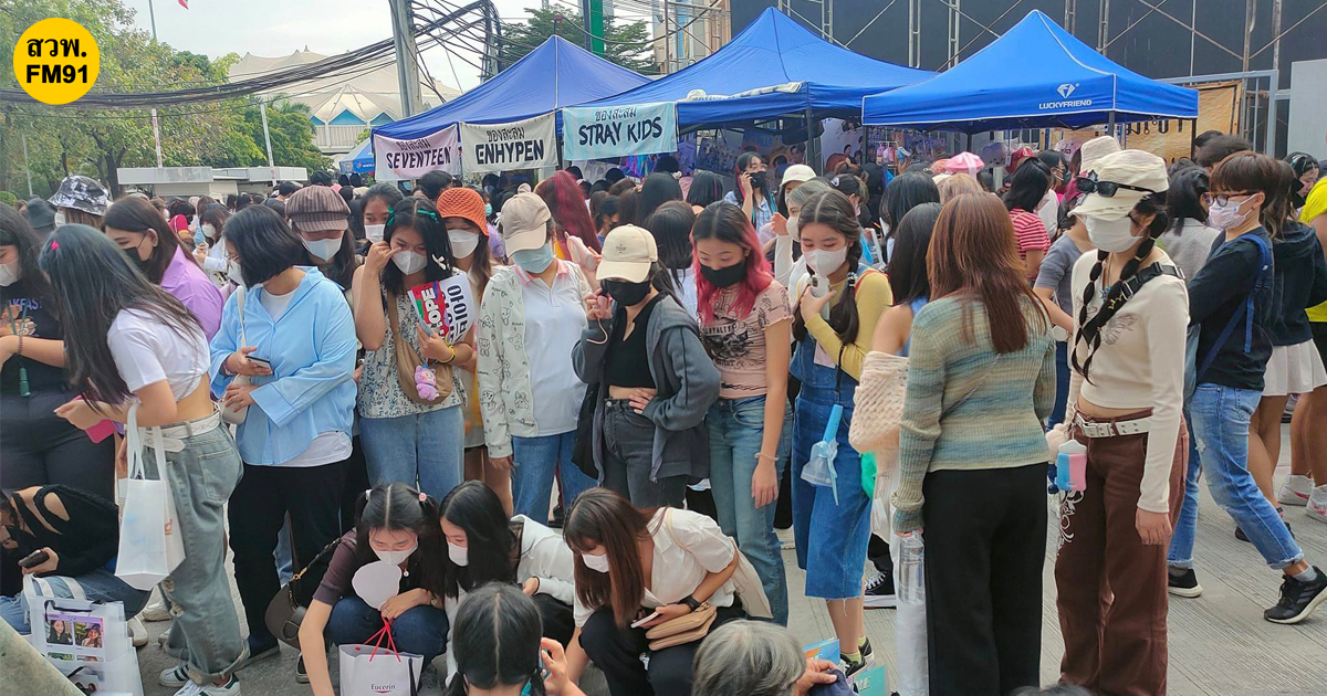 ผู้สื่อข่าวรายงาน เวลา 14.00 น. บรรยากาศหน้าสนามราชมังคลากีฬาสถาน ถ.รามคำแหง ที่มีการจัดงานประกาศรางวัลทางด้านดนตรีประจำปีของเกาหลีใต้ Golden Disc Awards In Bangkok ครั้งที่ 37 แฟนคลับ K-pop เตรียมพบกับนักแสดงและศิลปินจากเกาหลีใต้ที่ขนทัพมาร่วมงานคับคั่ง อาทิ ซง จุงกิ, Psy, (G)I-dle, Treasure, Enhypen, Seventeen, Stray Kids, NewJeans, J-hope BTS และอีกมากมาย